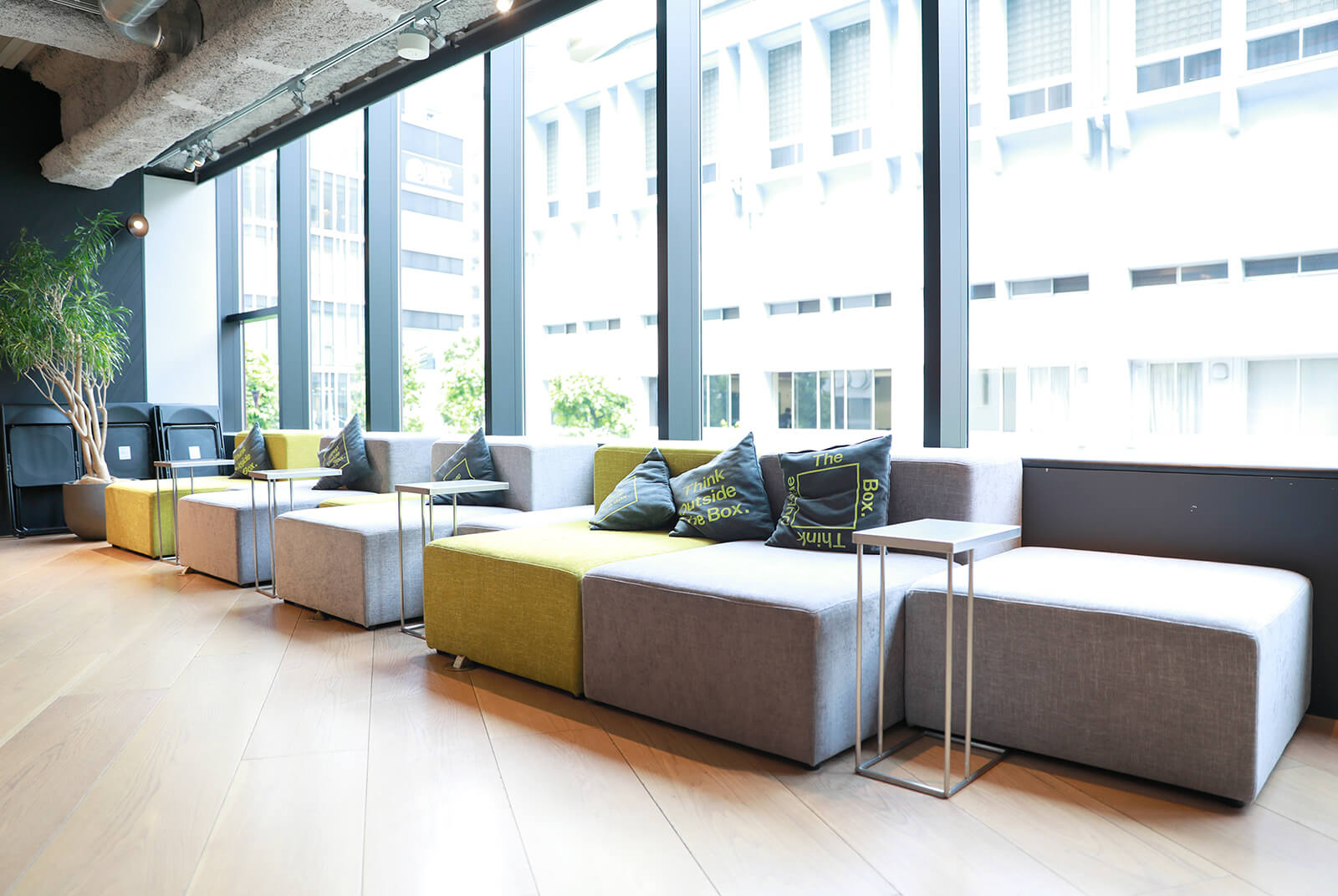 パルコの対面という抜群の立地に立つホテルミレニアルズ内のデザイン性の高い施設。外国人に人気のホテルだけに外国人が多く、海外にいるような気分になる。構成はシンプルで、4Fにはロビーを兼ねたラウンジとキッチン、食事も可能な大テーブル。3Fは開放的な大デスクと数個のボックス席、会議室のみで、一人向けの個別ブースはないが、むしろ偶発的な交流を楽しみたい。貸切でアパレルの展示会やイベントに利用することも可能。